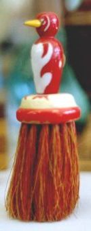 This little guy is too cute! He measures 4 1/2" tall, across the bottom of his feet is 1 5/8". The body, head, feet, legs and beak are all made out of wood. The wings and tail are cut from a very thin layer of leather. Wooden walkers were made from the 1920's through the 1940's. This one does not show any markings as to who was the maker or where he was made. He is in great condition and soooooooo adorable!!